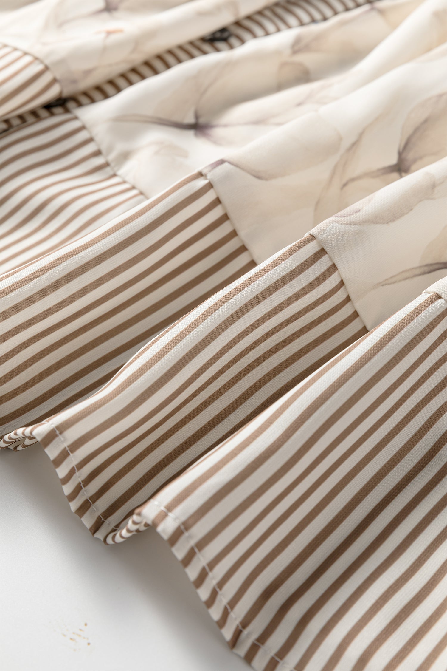 Khaki Plus Size Floral Print Striped Trim Patchwork Button Down A-line Dress